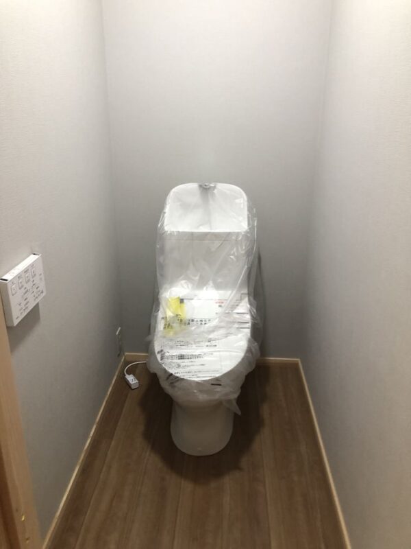 ✦ 14帖リビングフローリング貼り完了(サニタリースペース+トイレ)
